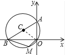 分析 连接OC,由圆周角定理可知AB为⊙C的直径,再根据∠BMO=120°可求出∠BAO的度数,证明△AOC是等边三角形,即可得出结果.