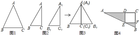 问题3:如图4,△ABC中,∠ACB=90°,四边形CDEF是正方形,AE=5,BE=3.求阴影部分的面积和.