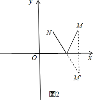 (2)如图2,作点,M关于x轴的对称点M′,则MN′交x轴于点P,![]()