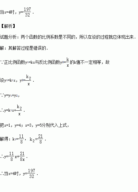 ∵y1与x成正比例,y2与x成反比例,可以设y1=kx,y2=