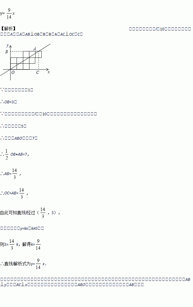如图,10个边长为1的正方形如图摆放在平面直角坐标系中,经过原点的一条直线l将这10个正方形分成面积相等的两部分,则该直线l的解析式为_____.