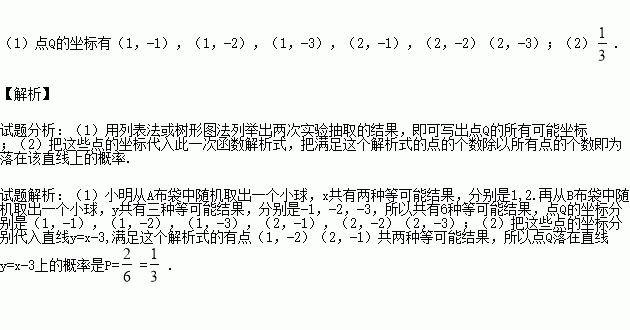 (1)用列表或画树状图的方法写出点Q的所有可能坐标;