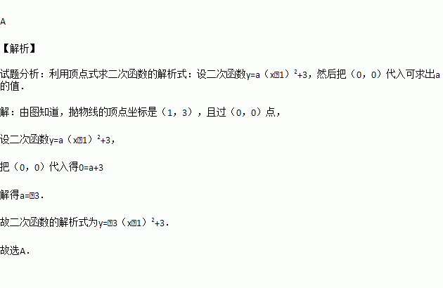 A.y=﹣3(x﹣1)2+3 B.y=3(x﹣1)2+3 C.y=﹣3(x+1)2+3 D.y=3(x+1)2+3