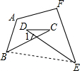 分析 连接BE,由三角形内角和外角的关系可知∠C+∠D=∠CBE+∠DEB,由四边形内角和是360°,即可求∠A+∠ABC+∠C+∠D+∠DEF+∠F=360°.