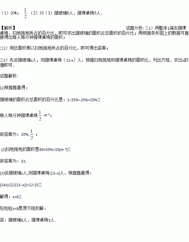 (1)从统计图中可知:擦玻璃的面积占总面积的百分比为________,每人每分钟擦课桌椅________m2;