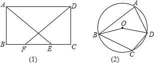 (2)如图,在圆内接四边形ABCD中,O为圆心,∠BOD=160°,求∠BCD的度数.