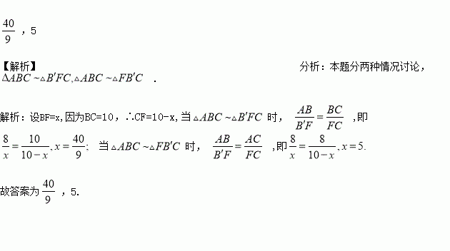 ,折叠痕为EF,已知AB=AC=8,BC=10,若以点