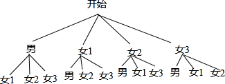 ËùÒÔ£¬P£¨Ç¡ºÃÊÇ1λÄÐͬѧºÍ1λŮͬѧ£©=$\frac{6}{12}$=$\frac{1}{2}$£®