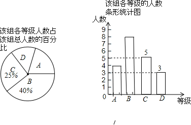 ÓÉÌâÒâµÃ£ºBµÈ¼¶µÄÈËÊý=20¡Á40%=8£¨ÈË£©£¬AµÈ¼¶µÄÈËÊý=20¡Á20%=4£®![]()