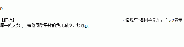 D. Ôö¼ÓÁ½Ãûͬѧ²Î¼Ó£¬½á¹ûÿλͬѧƽ̯µÄ·ÑÓüõÉÙ10Ôª¡£