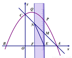 与x轴交于A、B两点(点A在点B的右侧),与y轴交于点C,有一宽度为1的刻度尺沿x轴方向平移,与y轴平行的一组对边交抛物线于点P和点Q,交直线AC于点M和点N,交x轴于点E和点F.