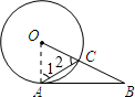 解答 解:连接OA.∵⊙O与AB相切于点A,∴∠OAB=90°.∵∠B=36°,∴∠AOB=180°-∠OAB-∠B=180°-90°-36°=54°.∵OA=OC,∴∠1=∠2=$\frac{1}{2}$(180°-∠AOB)=$\frac{1}{2}$(180°-54°)=63°.故∠2=63°,即∠OCA=63°.故答案为:63.
