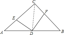 (2)首先根据等腰三角形三线合一的性质可得∠DCF=$\frac{1}{2}∠$ACB=45°,由直角三角形的性质可得AD=CD,然后证明△AED≌△CFD可得ED=DF,∠EDA=∠CDF,再证明△DFB≌△DEC可得∠EDC=∠FDB,进而可得到ED⊥DF.