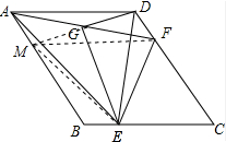 (2)延长DG交AB于M,连接ME、MF,先证明△AMG≌△FDG,得出AM=DF,DG=MG,证出MB=CF=EF,再证明△DFE≌△EBM,得出ME=DE,∠BME=∠DEF,∠BEM=∠EDF,证出△DEM是等边三角形,根据三角函数即可得出结论.