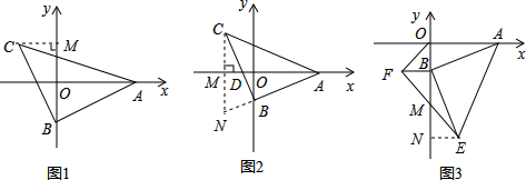 分析:(1)作CM⊥y轴于M,则CM=4,求出∠ABC=∠AOB=90゜,∠CBM=∠BAO,证△BCM≌△ABO,求出OB=CM=4即可.