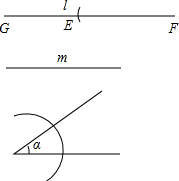 分析:首先作出l-m即GE的长,则AB=GE,作∠A=∠α,在一边上截取AB=GE,然后以B为圆心,以m为半径作弧,与∠A的另一边的交点就是C点.