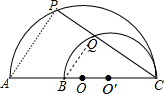 如图,AC、BC是两个半圆的直径,∠ACP=30°.若AB=10cm,则PQ的值为