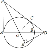 分析 (1)作OC⊥PD于C,根据角平分线的性质得出OC=OA,即可判定PD是⊙O的切线;