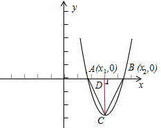 点评:此题考查了抛物线与x轴的交点,根据根与系数的关系推出两点间的距离表达式,再利用三角函数和抛物线顶点坐标公式列出等式是解题的关键.另外,此题对同学们的计算能力要求较高,对用换元法解方程应当有一定程度的了解.