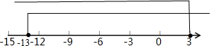 解答 解:解不等式-2x+3≥-3,得:x≤3,解不等式$\frac{x+7}{2}$≥$\frac{x+1}{3}$+1,得:x≥-13,∴不等式组的解集为:-13≤x≤3,不等式组的解集在数轴上表示如图: