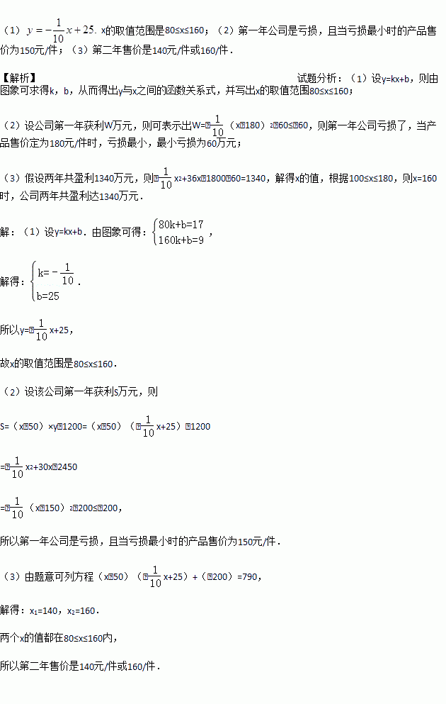 (2)第一年公司是盈利还是亏损?求出当盈利最大或亏损最小时的产品售价;