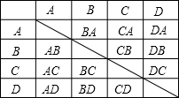 (3)设来自宿迁的4位“最有孝心的美少年”为A、B、C、D,列表如下:![]()
