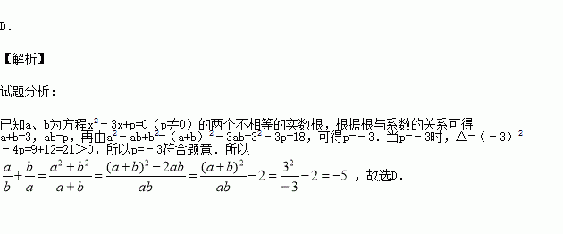 若关于x的一元二次方程x2﹣3x+p=0(p≠0)的两个不相等的实数根分别为a和b,且a2﹣ab+b2=18,则
