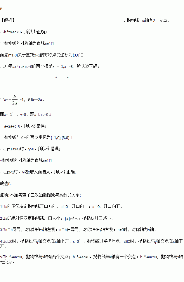 2+bx+c(a≠0)的对称轴为直线x=1,与x轴的一个交点坐标为(﹣1,0),其部分图象如图所示,下列结论:①4ac<b2;②方程ax2+bx+c=0的两个根是x1=﹣1,x2=3;③3a+c>0;④当x<0时,y随x增大而增大,其中结论正确的个数是( )