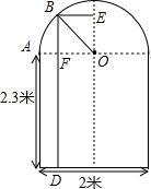 分析:若桥洞改为双行道要使宽为1.2米,高为2.8米的卡车能安全通过,则BF=BD-DF=2.8-2.3=0.5米,BE=2.2米,根据勾股定理求出OB的长,进而可得出结论.