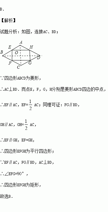 如果点E,F,G,H分别是菱形ABCD四边AB,BC,CD,DA上的中点,那么四边形EFGH是( ).
