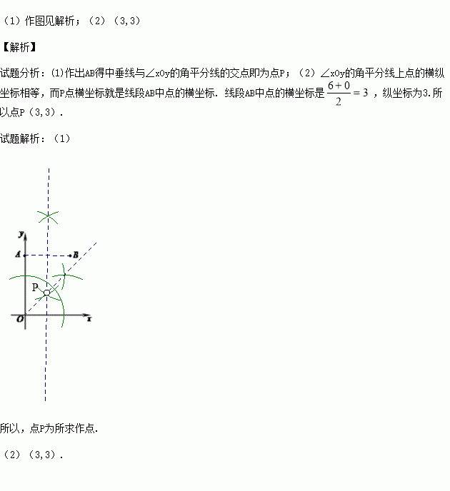 如图,在平面直角坐标系xOy中,点A(0,8)、点B(6,8).点P同时满足下面两个条件:①点P到A、B两点的距离相等;②点P到∠xOy的两边的距离相等.