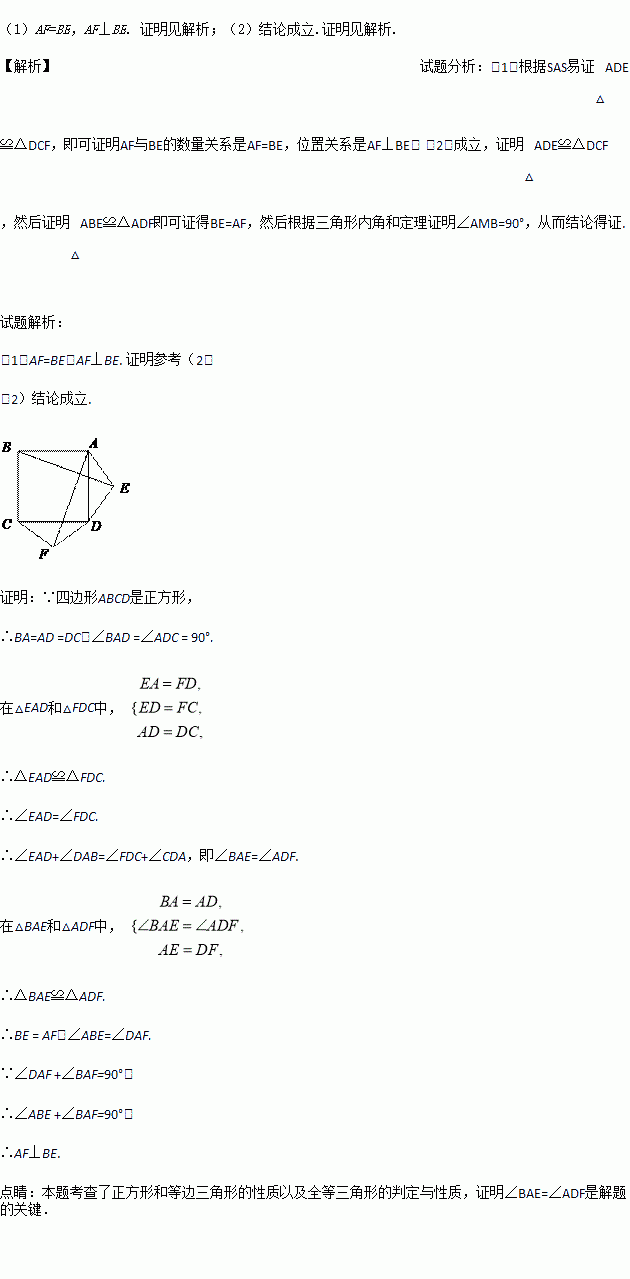 如图1,在正方形ABCD的外侧,作两个等边三角形ADE和DCF,连接AF,BE.