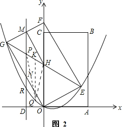 Èçͼ2£¬Á¬½ÓPQ£¬HQ£¬¹ýµãQ×÷QK¡ÎyÖᣬ½»GEÓÚK£¬ÔòK£¨x£¬-$\frac{\sqrt{3}}{3}$x+2£©£¬