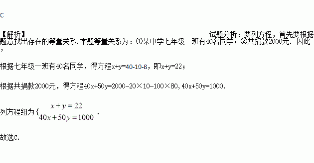 款50元的有y名同学,根据题意,可得方程组( )