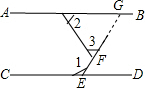 分析:延长EF交直线AB于点G,由平行线的性质可求出∠AGF的度数,再由三角形内角和定理即可得出结论.