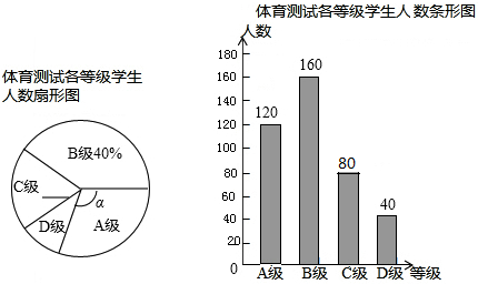 (2)求出A级的百分比,360°乘百分比即为∠α的度数,根据各等级人数之和等于总人数求出C等级人数,补全条形图;