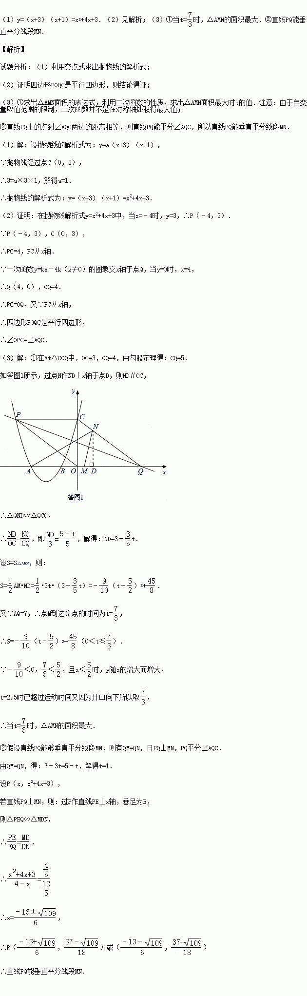 (2013•海南)如图,二次函数的图象与x轴相交于点A(﹣3,0)、B(﹣1,0),与y轴相交于点C(0,3),点P是该图象上的动点;一次函数y=kx﹣4k(k≠0)的图象过点P交x轴于点Q.