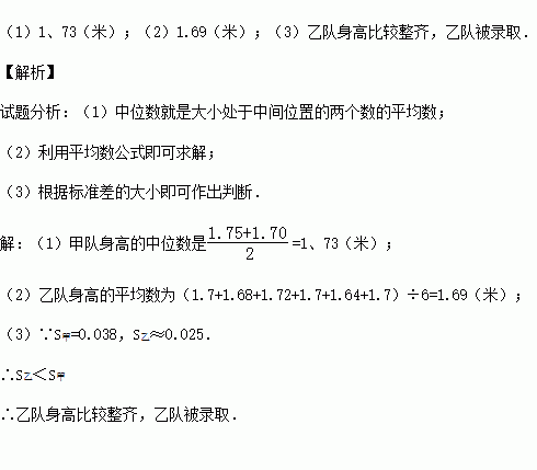 (3)如果选拔标准是身高越整齐越好,那么甲乙两个队哪个队被录取?请说明理由.