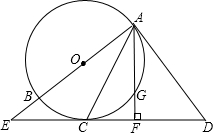 18.如图,AB是⊙O的直径,直线AD与⊙O相切于点A,点C在⊙O上,∠DAC=∠ACD,直线DC与AB的延长线交于点E.AF⊥ED于点F,交⊙O于点G.