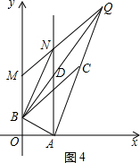 (2)连接BN,CN,首先求出∠BQC=60°,∠BAQ=30°,然后证明△ABQ≌△ANQ,进而求出∠BAO=30°,由S四边形BQNC=4$\sqrt{3}$,求出OA=3,于是P点坐标求出;