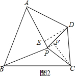 过点C作CF⊥BP,交BP的延长线于F,过点D作DE⊥AP于E,如图2,![]()
