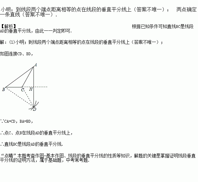 小明说:图中的BH⊥AD且平分AD.