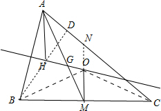解答 证明:如图所示,设AM为△ABC的中线,H、O分别是垂心和外心,连接HO,AH、OM,则OM⊥BC,AH⊥BC,![]()