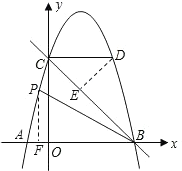 ∴tan∠PBF=tan∠CBD=$\frac{DE}{BE}$=$\frac{3}{5}$,设PF=3t,则BF=5t,OF=5t-4