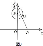 (2)当m从$\frac{1}{3}$变化到$\frac{2}{3}$时,点N相应移动的路经是一条线段,只需考虑始点和终点位置即可解决问题.当m=$\frac{1}{3}$时,连接PM,如图2,点M从点A绕着点P逆时针旋转了一周的$\frac{1}{3}$,从而可得到旋转角为120°,则∠APM=120°,根据PA=PM可得∠PAM=30°,在Rt△AON中运用三角函数可求出ON的长;当m=$\frac{2}{3}$时,连接PM,如图3,点M从点A绕着点P逆时针旋转了一周的$\frac{2}{3}$,从而可得到旋转角为240°,则∠APM=120°,同理可求出ON的长,问题得以解决.
