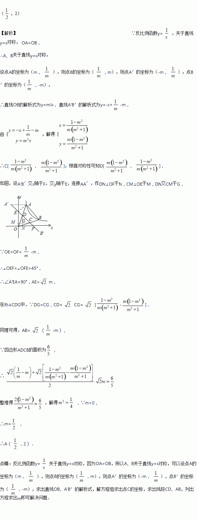 (x >0)的图象上,点A在点B的左侧,且OA=OB,点A关于y轴的对称点为A′,点B关于x轴的对称点为B′,连接A′B′ 分别交OA,OB于点D,C,若四边形ABCD的面积为