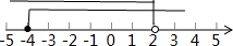 解答 解:$\left\{\begin{array}{l}{3x>4x-2①}\\{\frac{1}{2}x+3≥1②}\end{array}\right.$解不等式①得x<2,解不等式②得x≥-4,则不等式组的解为:-4≤x<2;把解集在数轴上表示出来为: