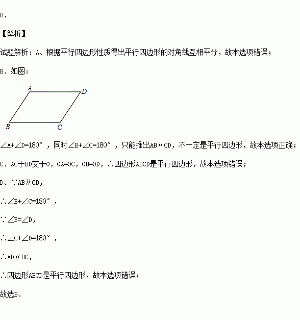 B.有两对邻角互补的四边形为平行四边形