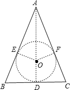 解答 解:如图,设三角形的内切圆为⊙O,切点分别为D、E、F,