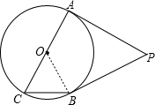 分析 连结OB,如图,先利用等腰三角形的性质,由OC=OB得到∠OBC=∠OCB=75°,再利用三角形外角性质求出∠AOB=150°,接着根据切线的性质得到∠OAP=∠OBP=90°,然后根据四边形内角和为360°可计算出∠P的度数.